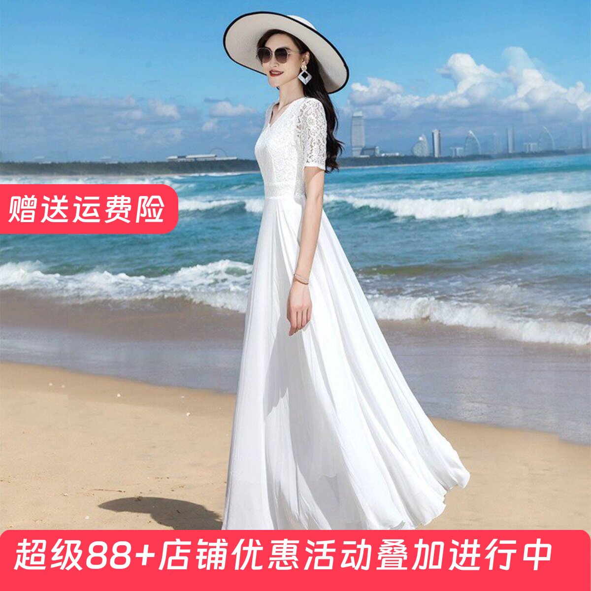 白色海边度假风连衣裙女夏高级感飘逸大摆长裙三亚沙滩裙超仙纱裙