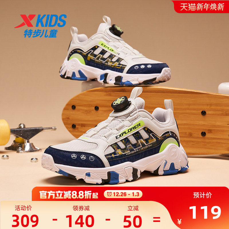 特步童鞋儿童运动鞋男童秋季网面透气旋转纽扣鞋中大童女跑步鞋子