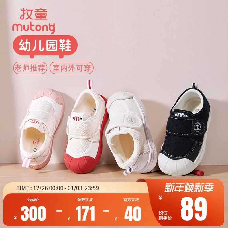 牧童童鞋儿童帆布鞋幼儿园室内鞋男童春秋透气网面女童软底小白鞋