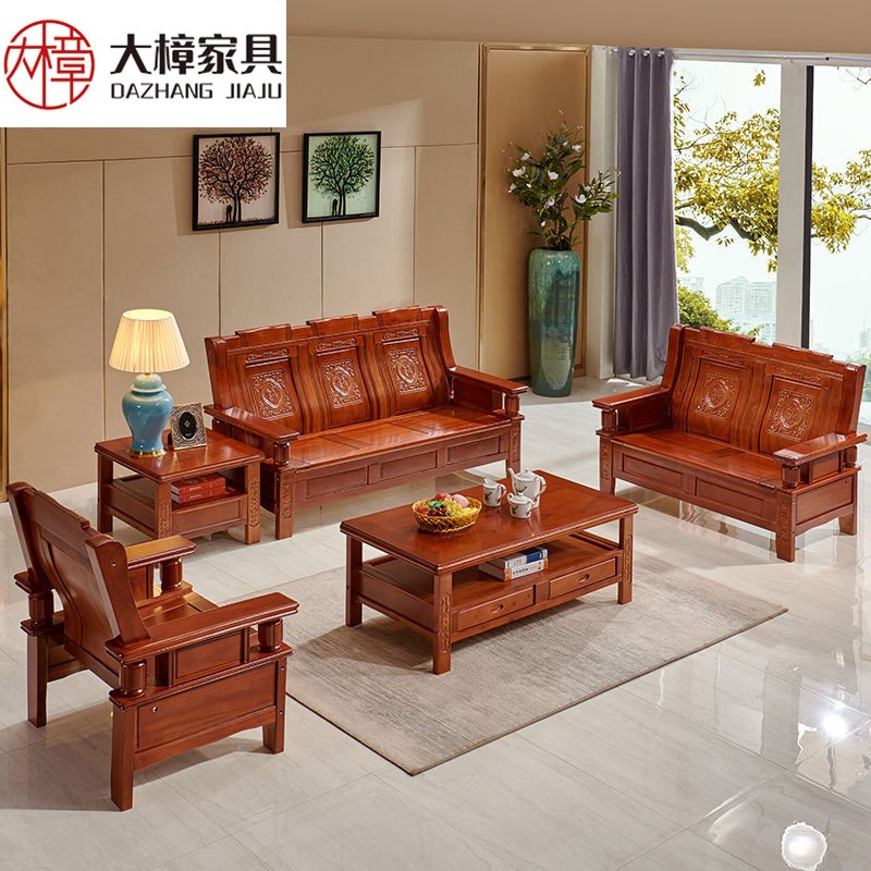 新中式沙发组合小户型冬夏两用全实木仿古沙发客厅办公农村经济型