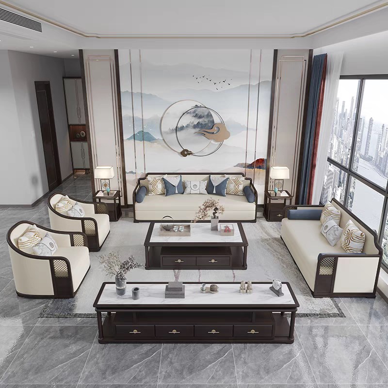 现代新中式沙发组合实木国风简约别墅客厅家具样板房酒店高档定制
