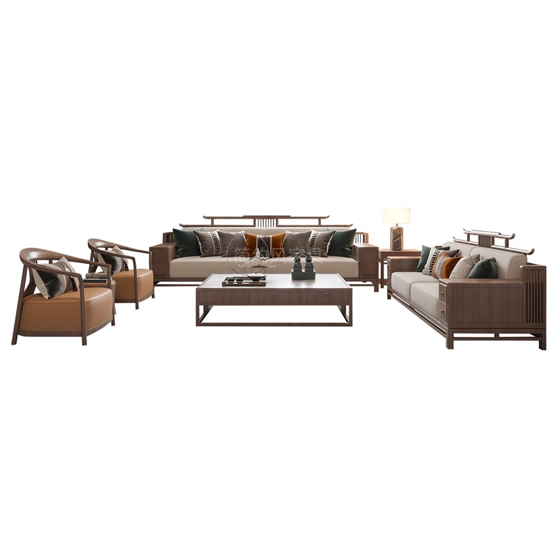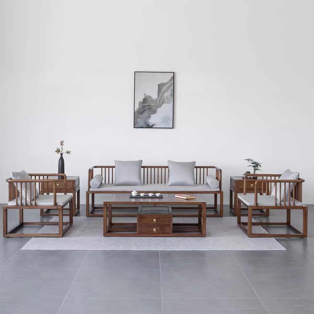 需定制新中式沙发组合北美黑胡桃全实木现代免漆宋式美学风格客厅