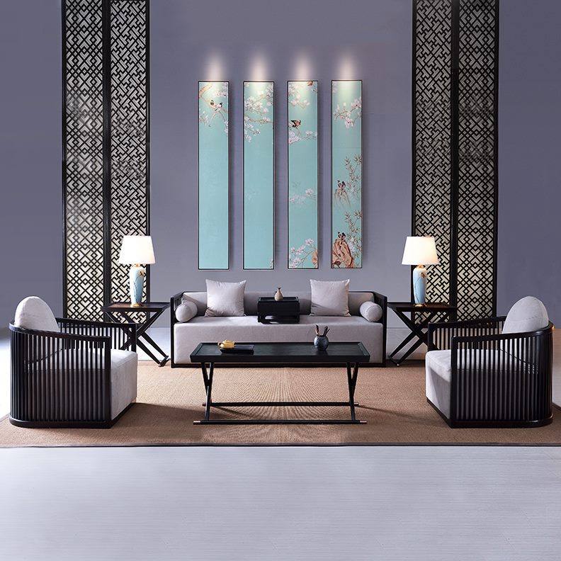 新中式沙发组合禅意客厅沙发样板房酒店大厅休闲沙发售楼接待定制