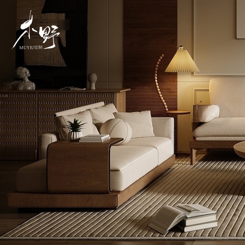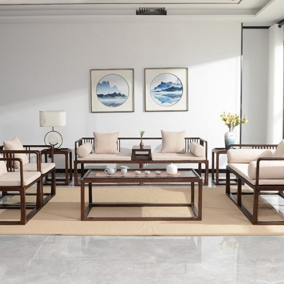 苏卯实木新中式沙发组合简约禅意布艺小户型直排现代客厅原木家具
