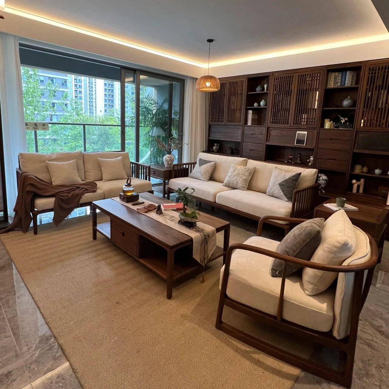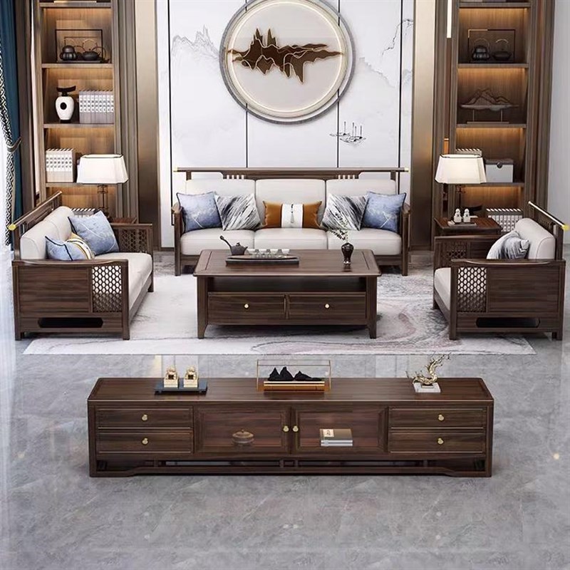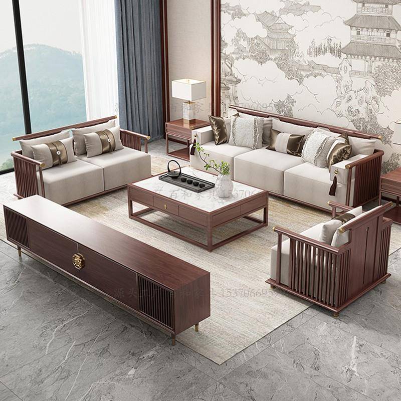 需定制黑胡桃新中式沙发组合2025新款茶几电视柜现代大客厅古典实