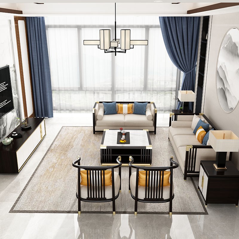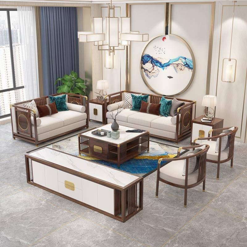 全屋家具定制新中式沙发组合客厅别墅大理石茶几轻奢布艺沙发小户