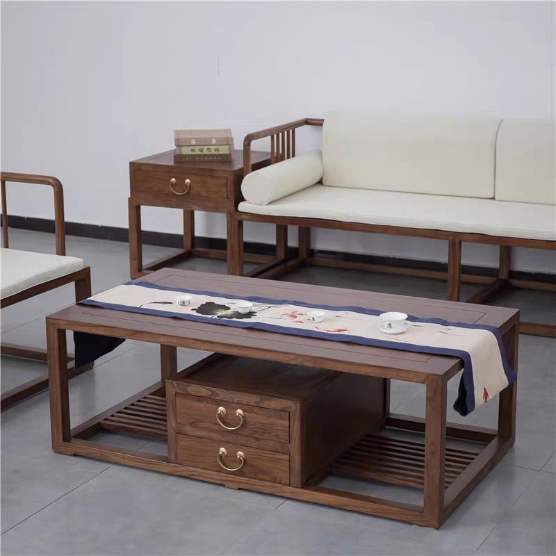 需定制新中式沙发组合老榆木禅意民宿黑胡桃榻现代实木简约客厅酒