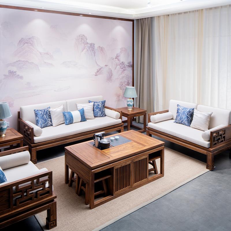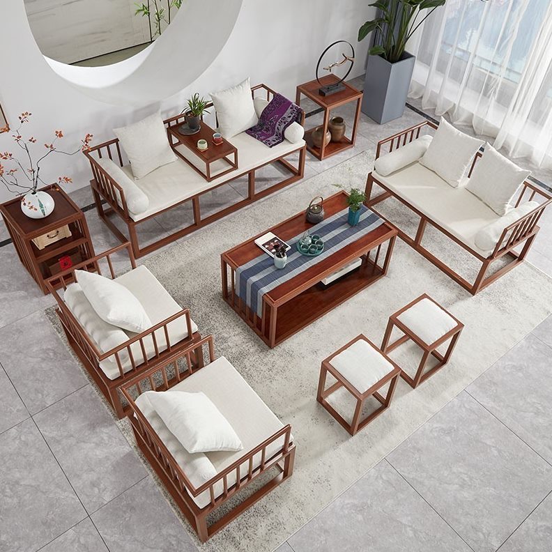 禅意酒店别墅实木沙发家用家具小户型民宿办公新中式沙发组合客厅