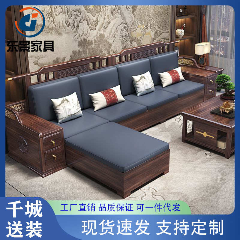 新中式乌金木实木沙发组合家用客厅大小户型冬夏两用储物现代简约