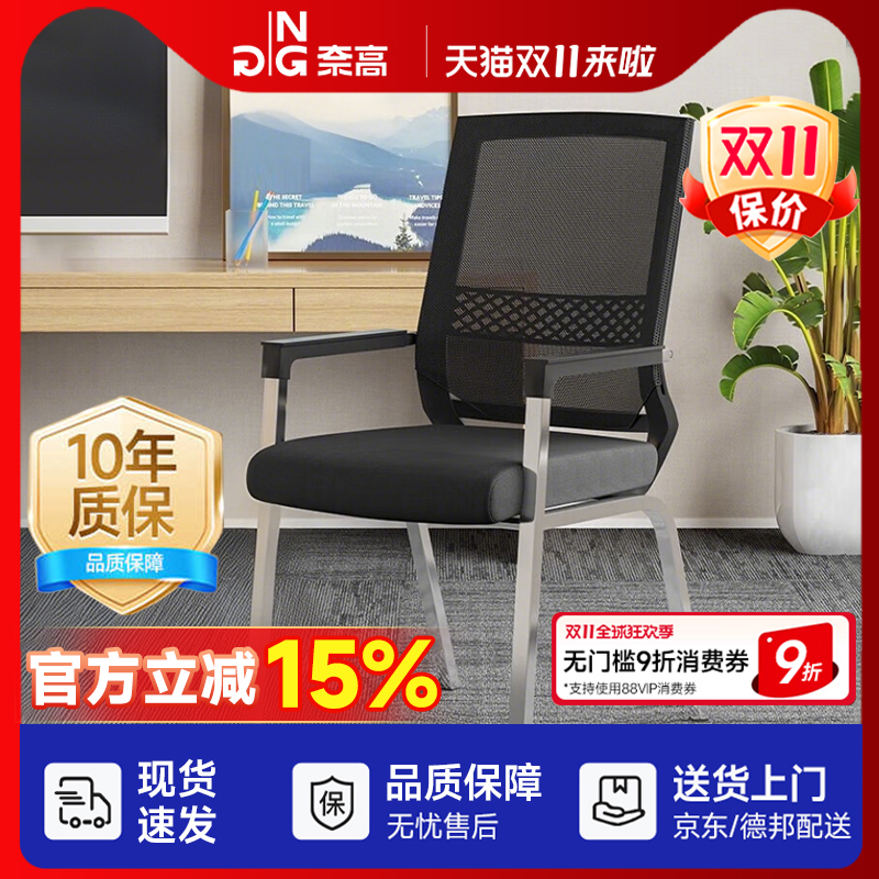 奈高弓形椅办公椅会议椅网布透气舒适人体工学椅电脑椅加厚四脚椅
