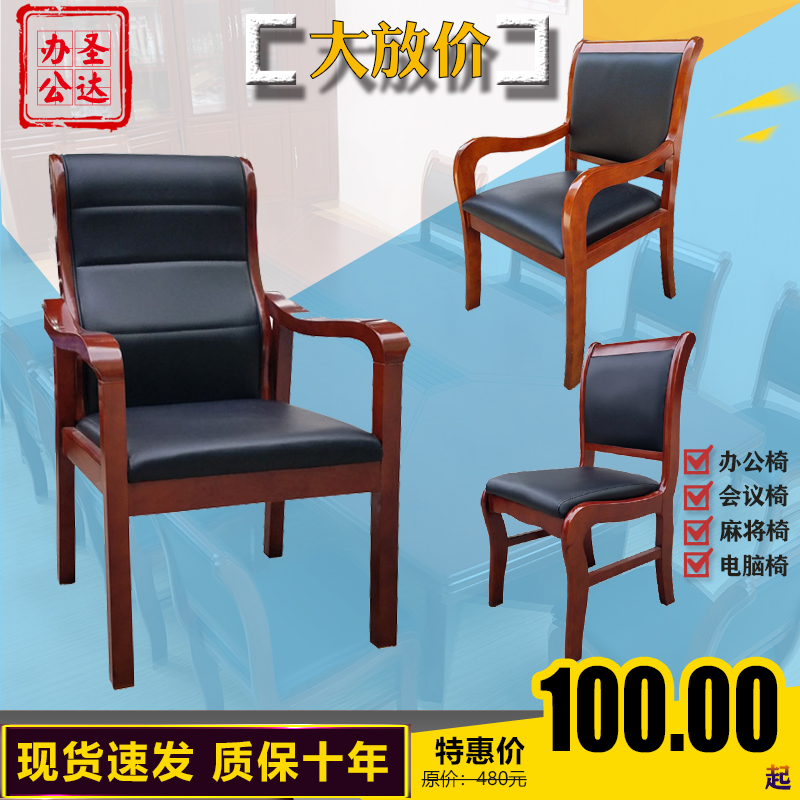 实木会议椅办公椅靠背椅棋牌室椅皮质椅四脚麻将椅餐桌椅培训椅子