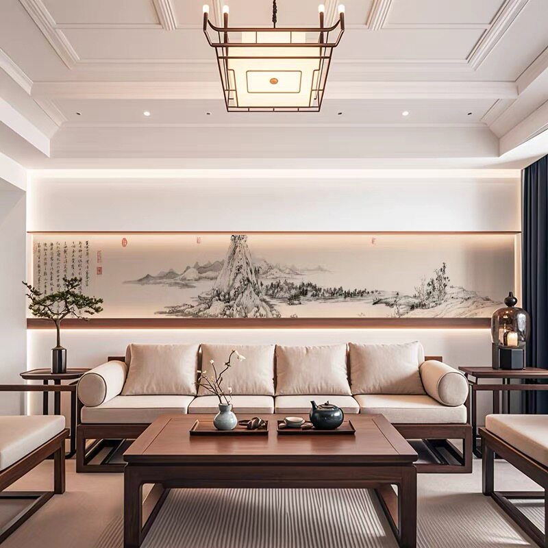 新中式古典长条腰线宋式美学中古风定制画芯图库墙布壁画墙纸壁纸