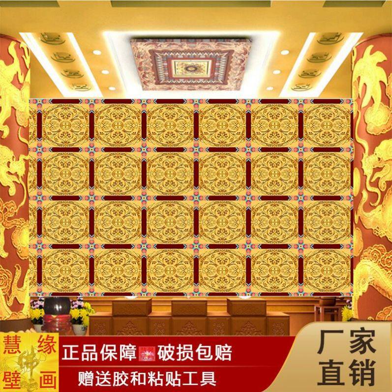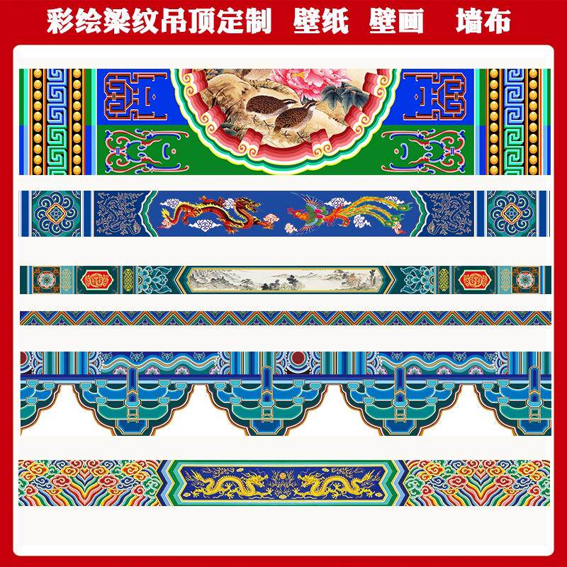中式墙纸无缝房梁吊顶宗教寺庙壁纸横梁壁画皇宫花纹酒店饭店彩绘