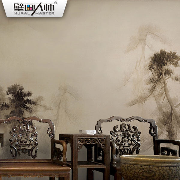 定制壁画新中式墙纸艺术雾松个性卧室沙发电视背景墙壁纸墙布古典
