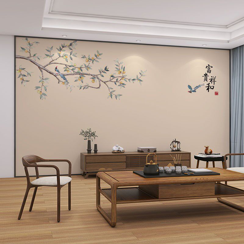 墙纸3d新中式柿柿如意电视背景墙壁布客厅壁画卧室墙布影视墙壁纸