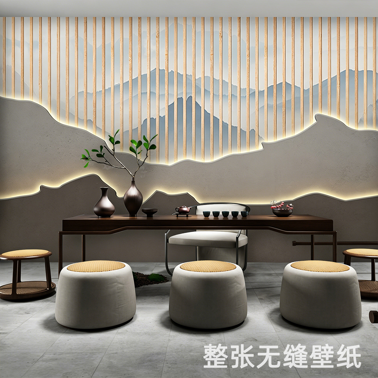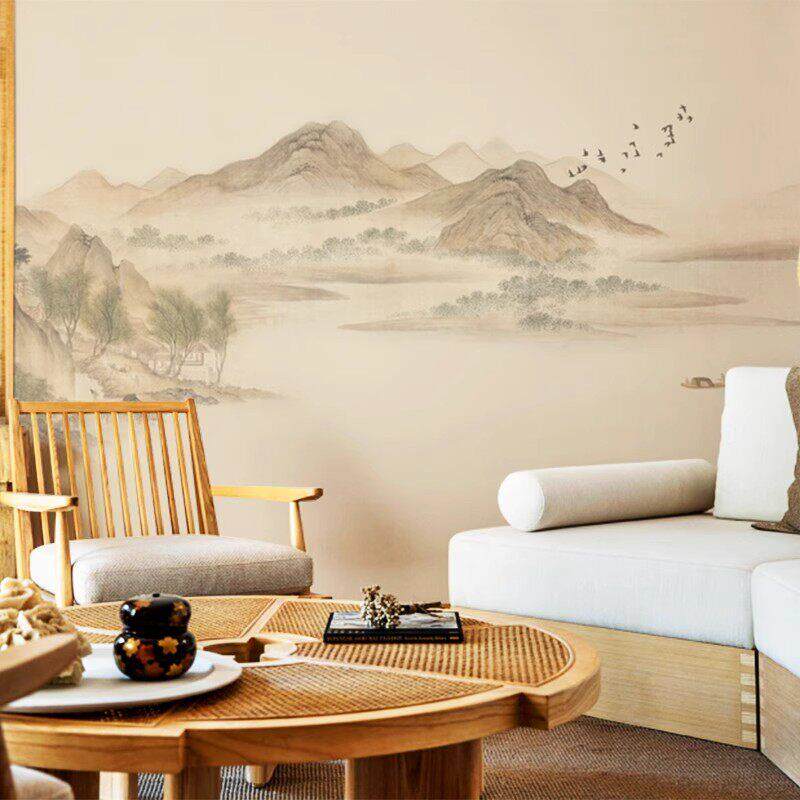 宋代美学禅意客厅装饰画茶室新中式墙纸墙布细窄长条画山水画壁画