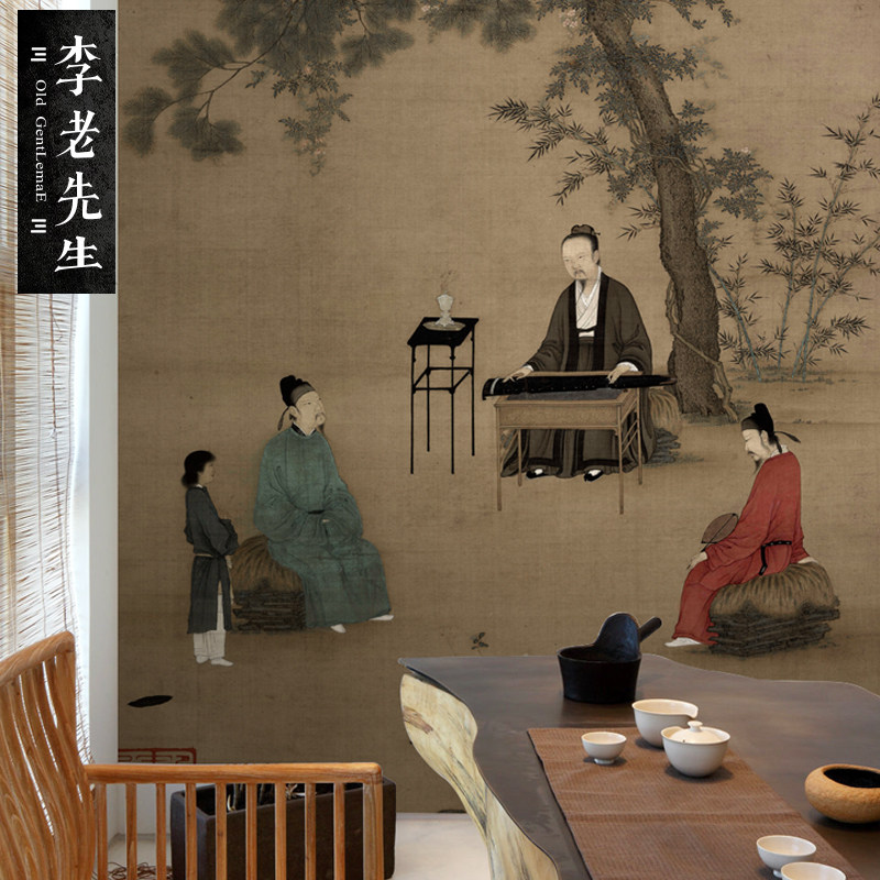 中古风客厅壁画背景墙诧寂中式墙纸卧室茶室墙布宋氏美学整张壁画