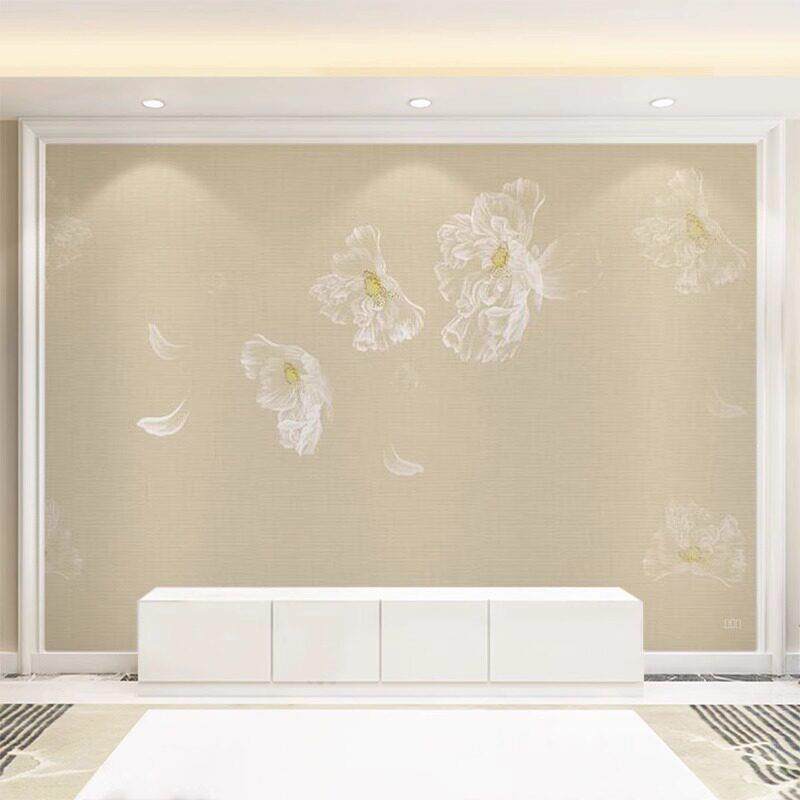 新中式墙纸花朵简约墙布别墅客厅壁布电视背景墙壁纸米黄色壁画AI