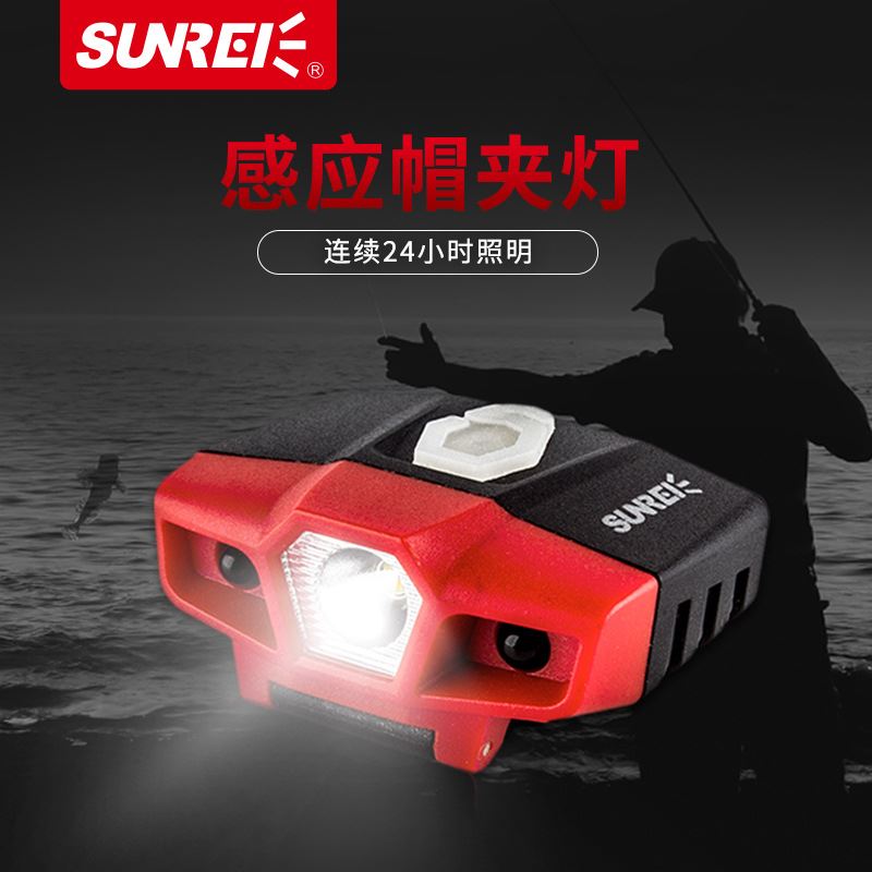 威克特钓鱼头灯充电感应灯led强光超亮夜钓灯头戴式夹帽灯帽檐灯
