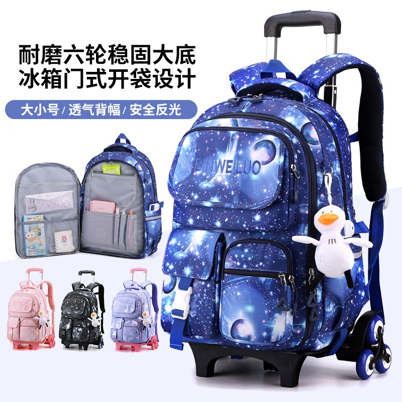 拉杆书包女小学生1-3-r6年级冰箱门新款儿童男孩大容量减负双肩包