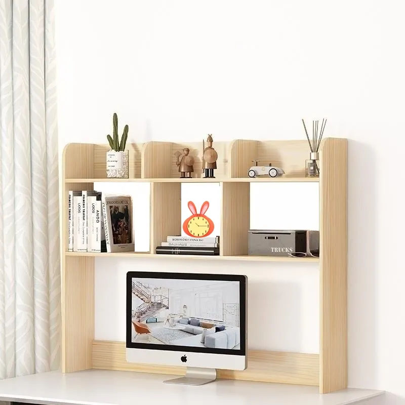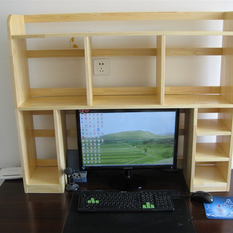 实木书架电脑桌面书桌收纳置物架桌桌上课桌上的书架子木架上桌柜