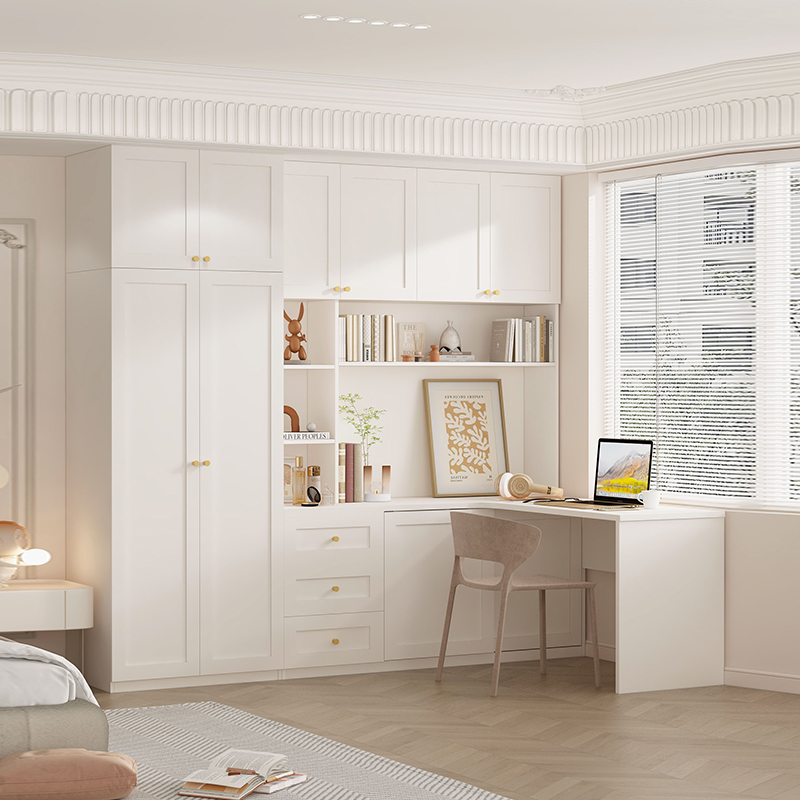 简约转角书架电脑桌台式家用带书桌书柜一体衣柜组合连体柜办公桌