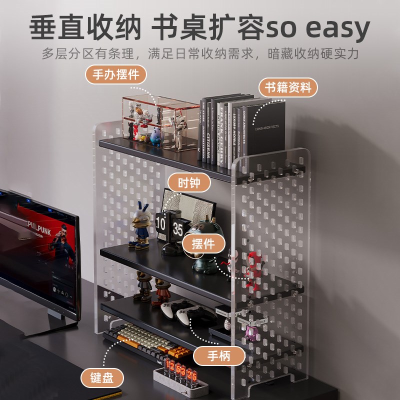 桌面置物架亚克力洞o洞板桌上书架电脑桌工位多层收纳架分层整理