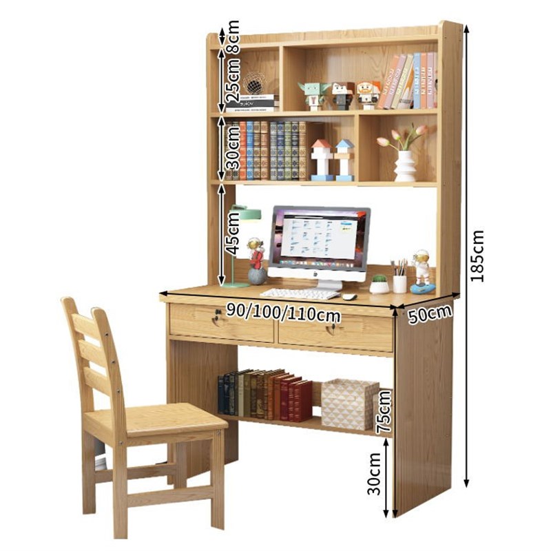 全实木书桌家用简易带书架电脑桌工作台卧室中小学生学习写字桌子