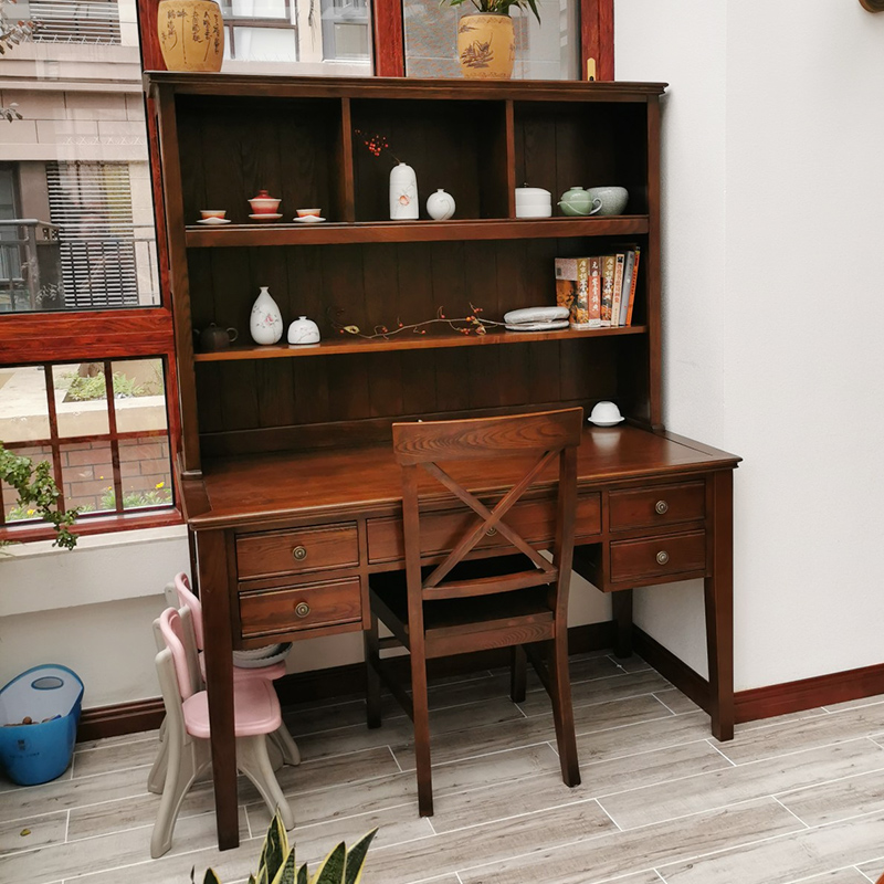 纯实木书桌书架电脑桌书桌一体美式写字台写字桌书桌柜一体白蜡木