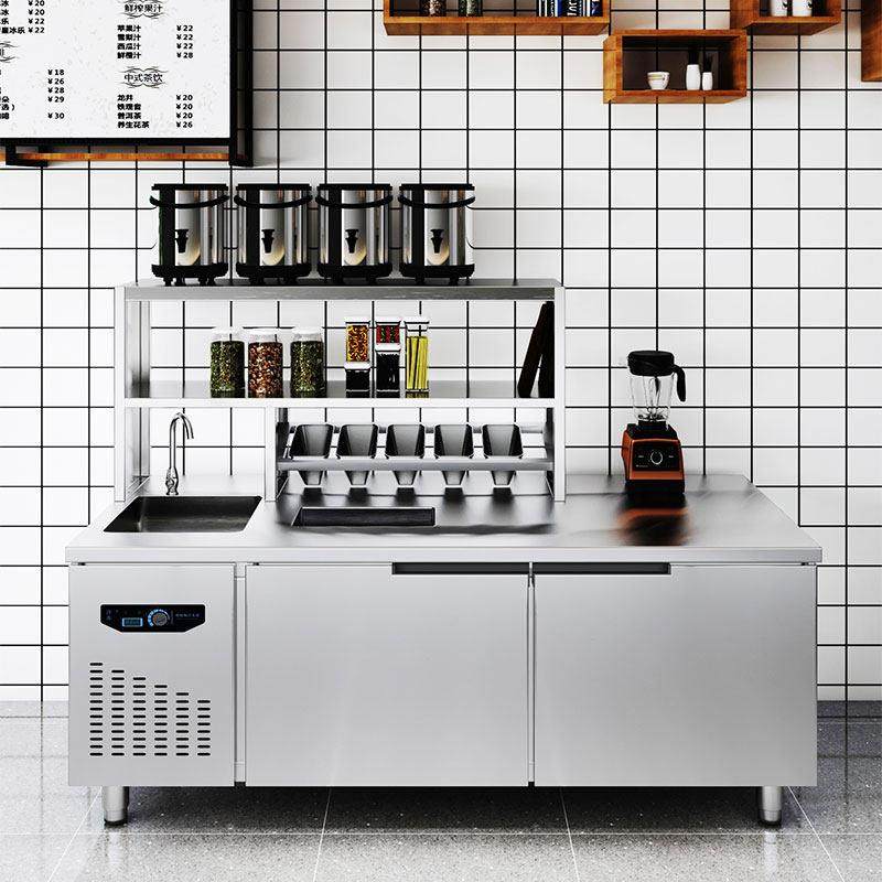 不锈钢水吧台奶茶店咖啡店酒吧冷藏操作台奶茶制作台水吧台雪克台