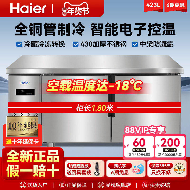 海尔厨房商用工作台冷藏操作台冰柜冰箱冷柜冷冻厨房不锈钢保鲜柜