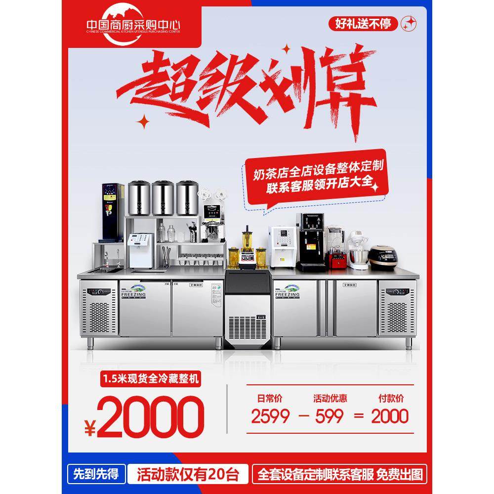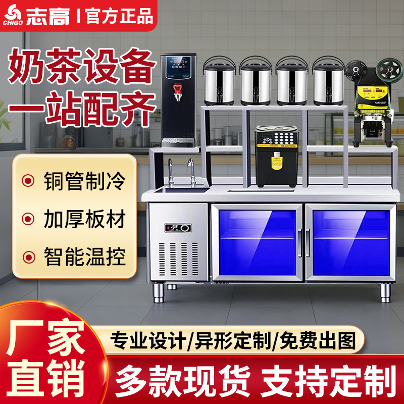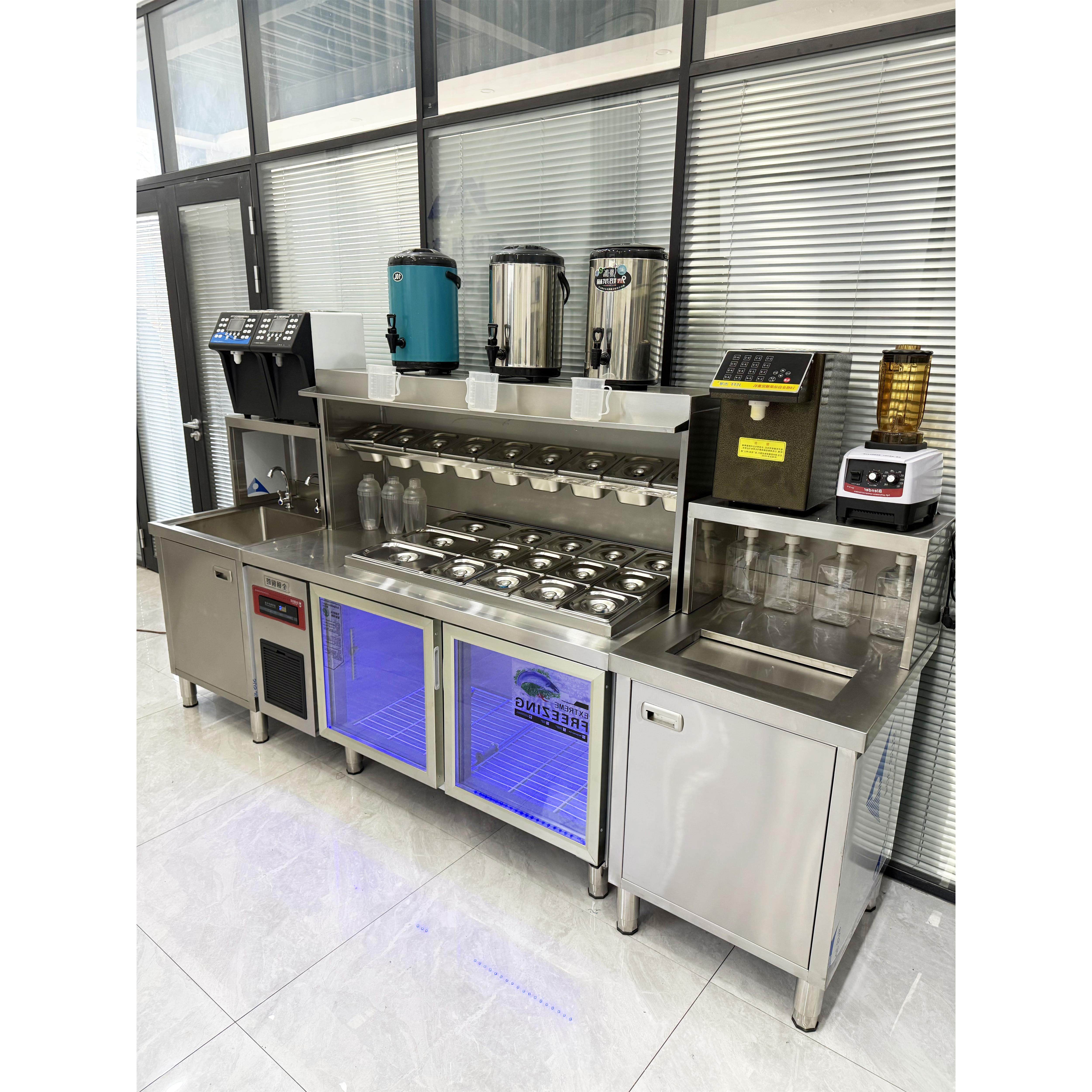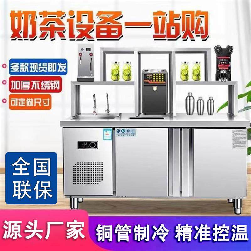 奶茶店设备全套冷藏操作台架子工作台冰柜饮品店奶茶机商用水吧台
