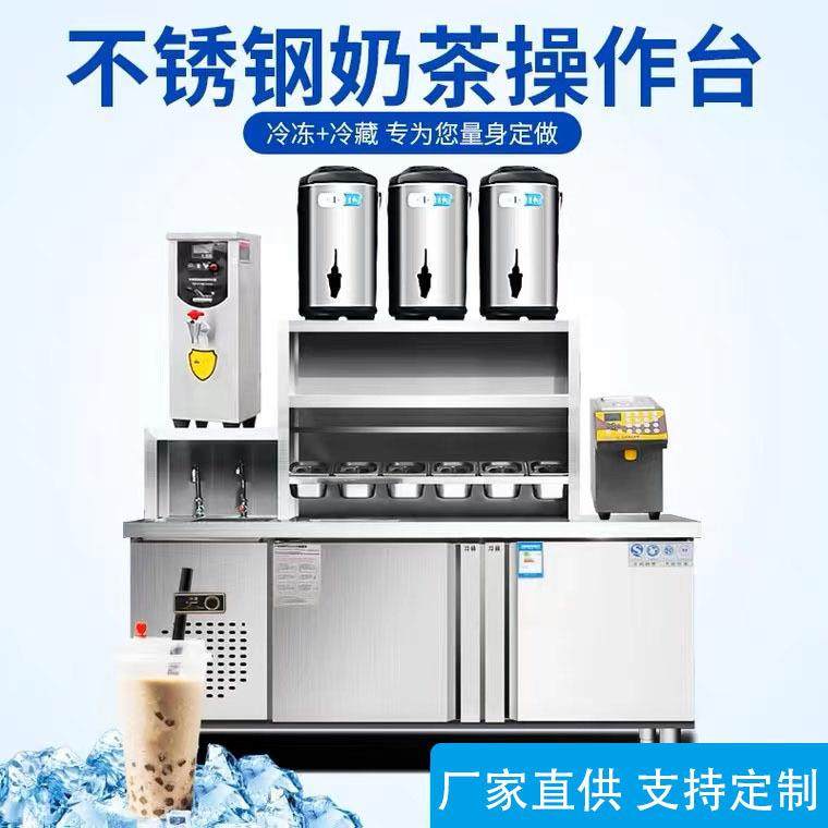 奶茶店设备全套水吧台商用不锈钢制冷工作台奶茶机冷藏操作台定制