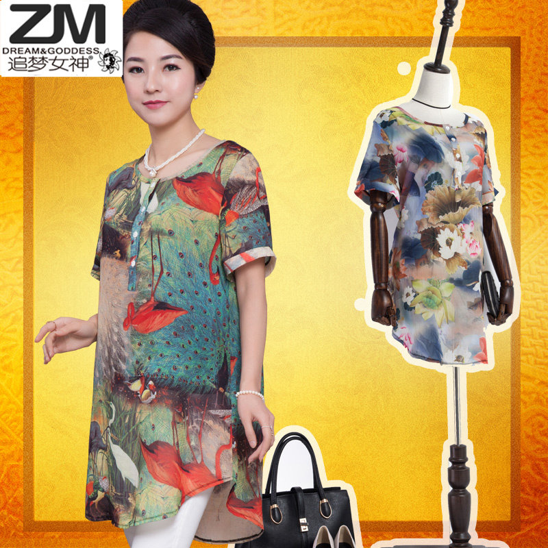 40岁妈妈夏装遮肚子雪纺衫中长款加肥加大码中袖上衣宽松肥胖女装