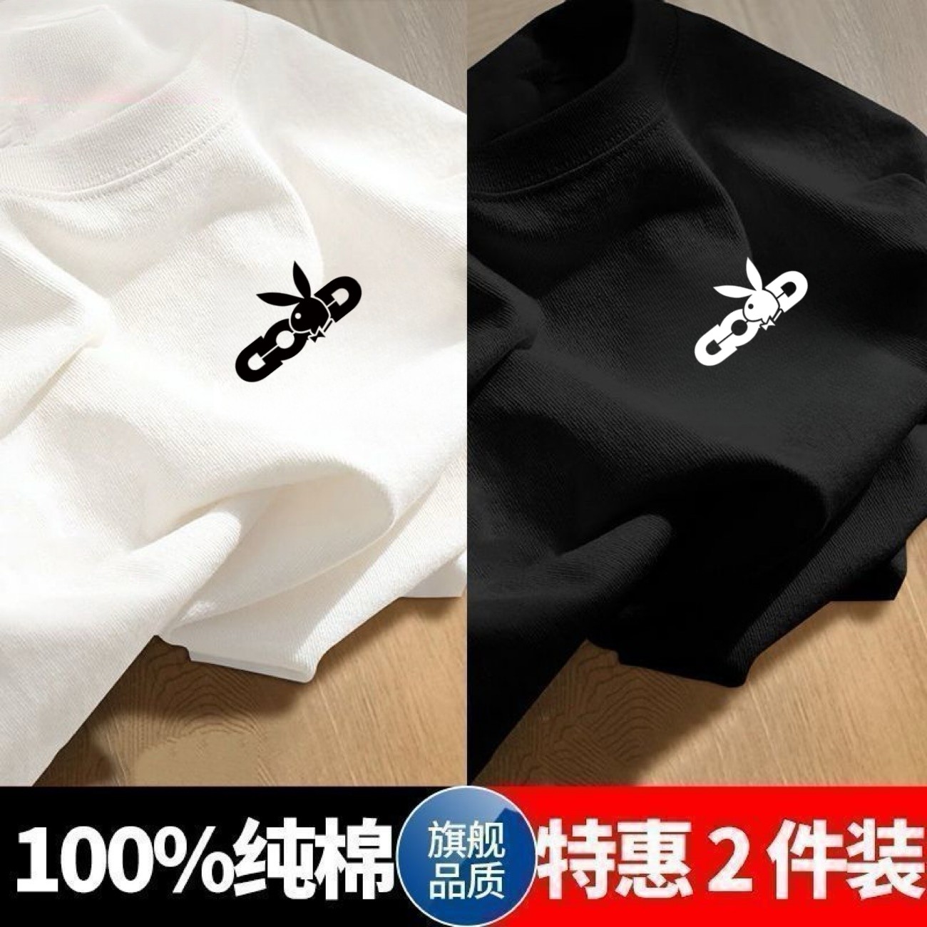 PLAYBOY花花公子夏季纯棉短袖T恤男女宽松休闲百搭简约圆领上衣男