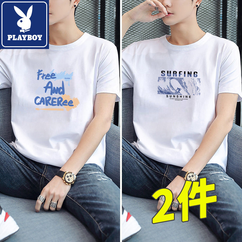 花花公子买一送一夏季短袖t恤男宽松韩版潮流半袖上衣体恤打底衫