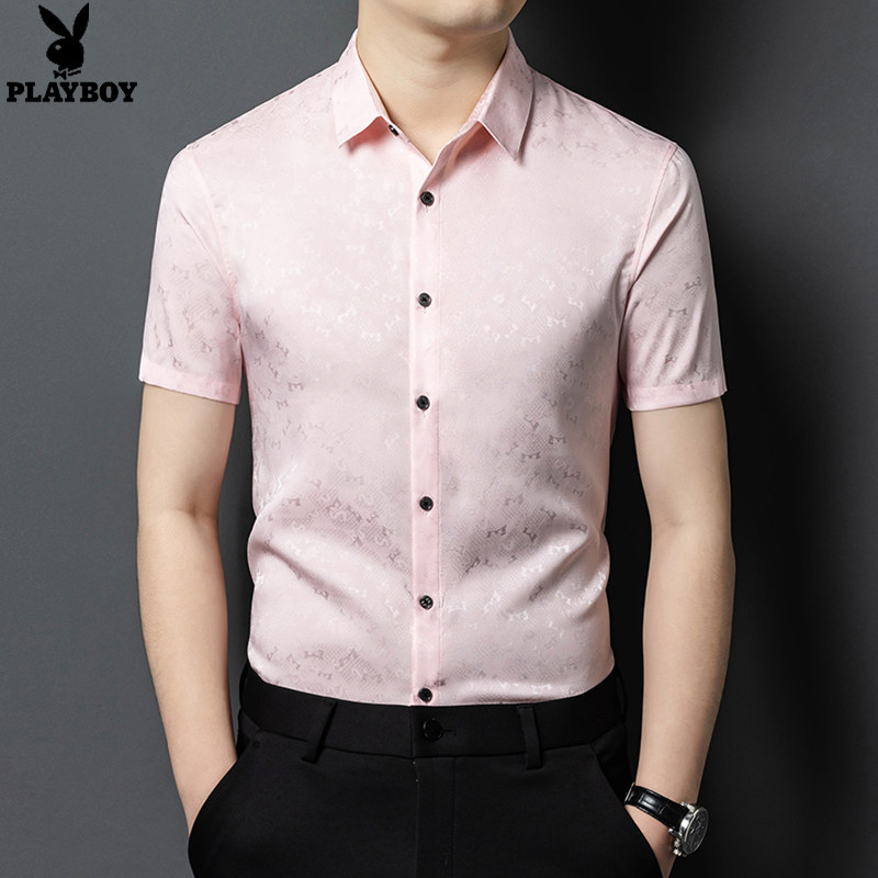 花花公子短袖衬衫男2025夏季新款中青年薄款衬衣潮男士桑蚕上衣丝