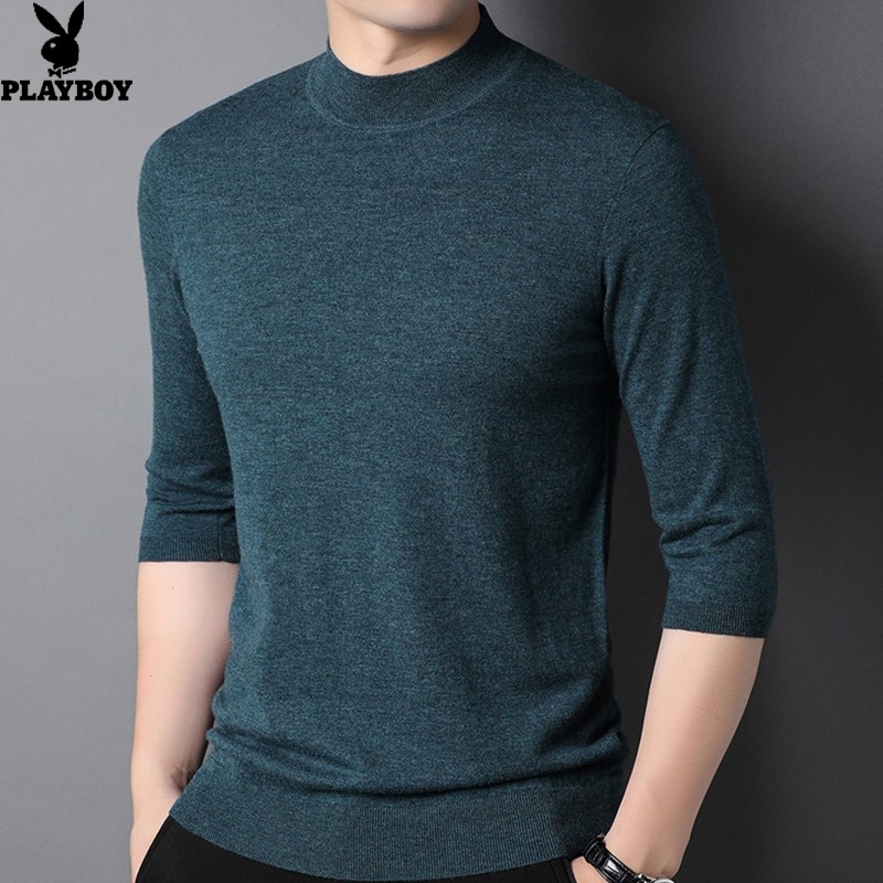 花花公子短袖羊毛衫2025春可机洗打底针织t恤男半高领小衫男上衣
