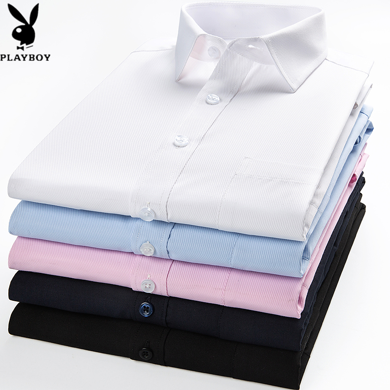【DP免烫】花花公子长袖衬衫男士纯棉商务休闲职业正装短袖白衬衣