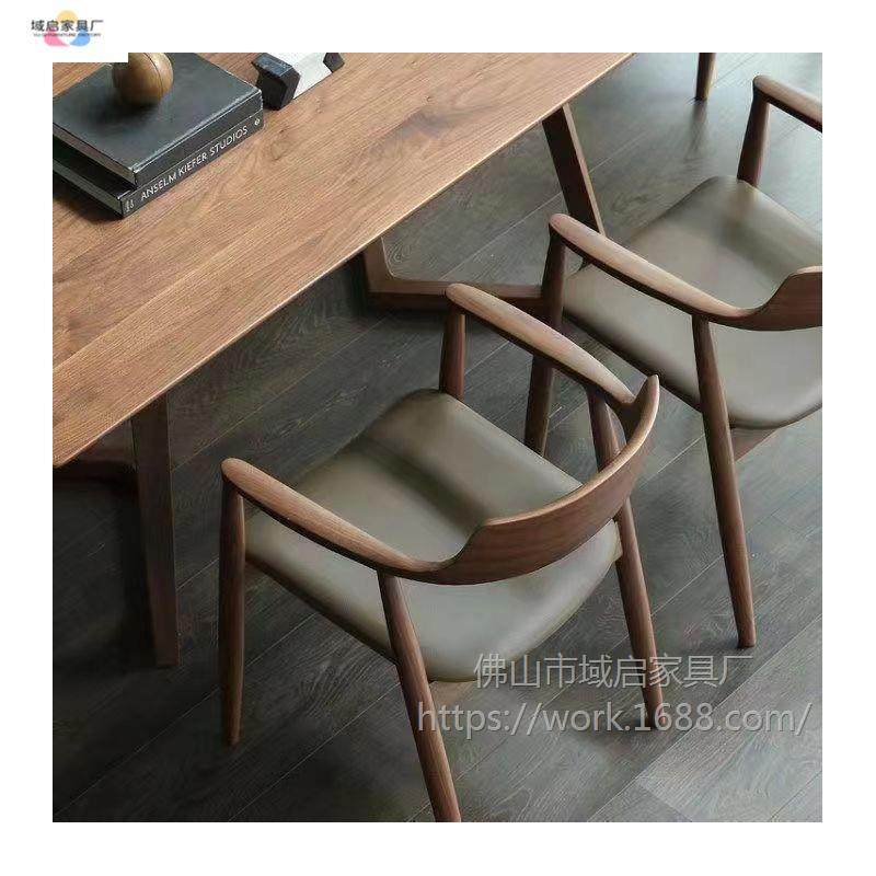 源头工厂北欧实木椅白蜡木椅广岛扶手靠背餐椅休闲洽谈书桌椅茶椅