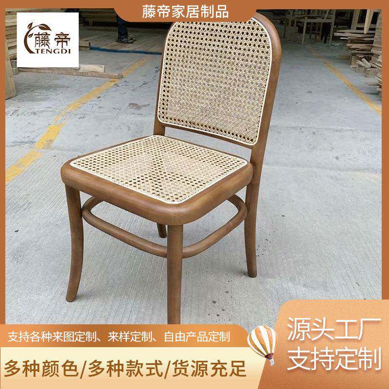 藤编椅家用北欧实木椅藤编凳欧式民宿餐椅网红椅复古餐椅轻奢藤椅