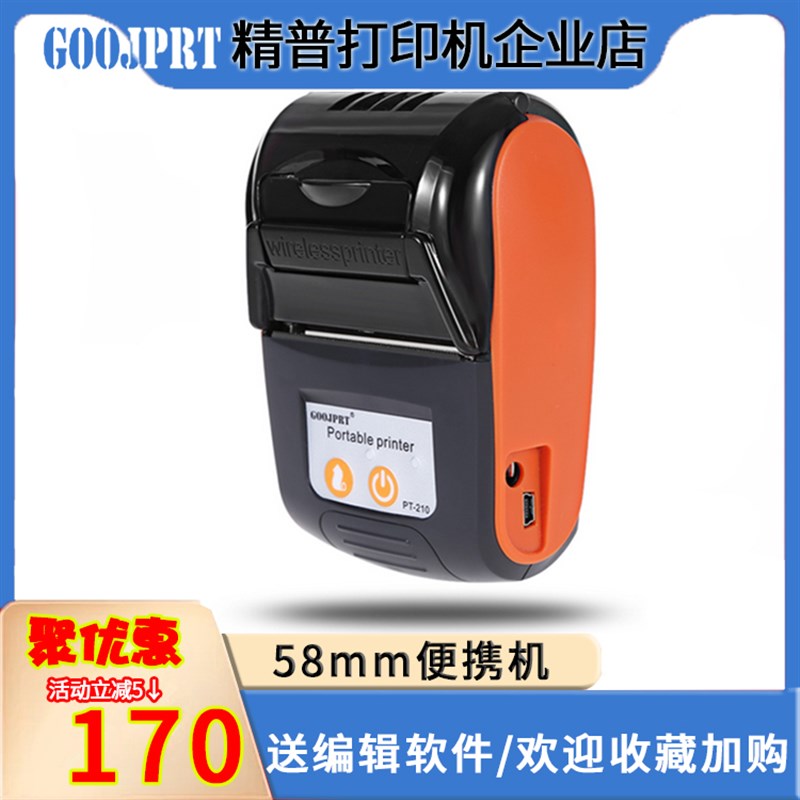 精普直销PT210便携式热敏小票据管家婆进销存仓储条码打印机