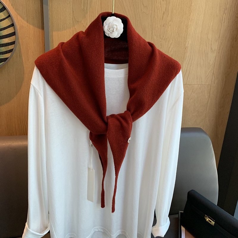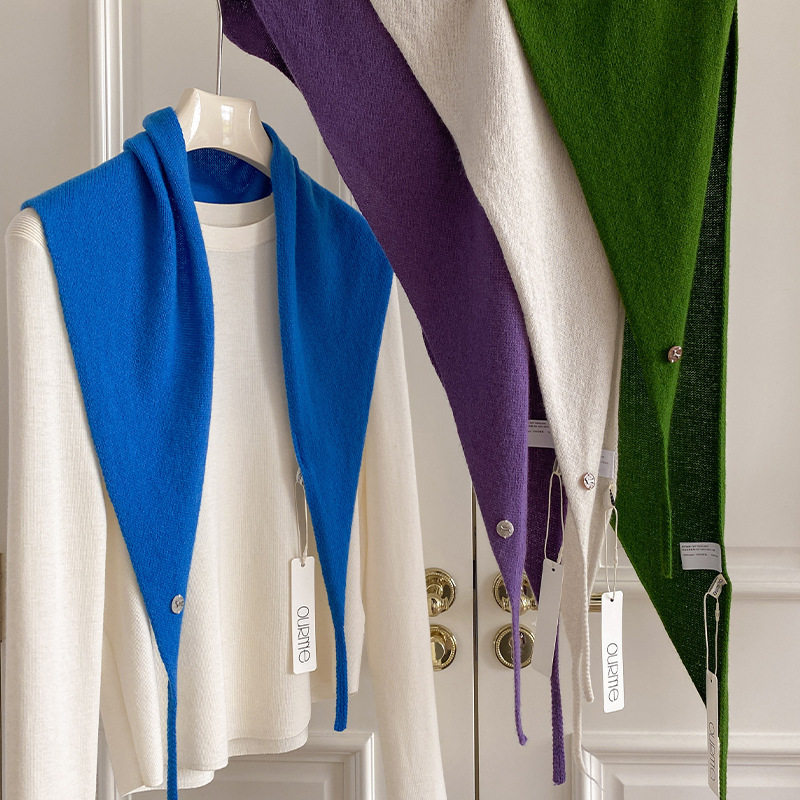 含羊毛小众搭肩围巾百搭时尚新款纯色三角巾披肩针织多功能秋冬女
