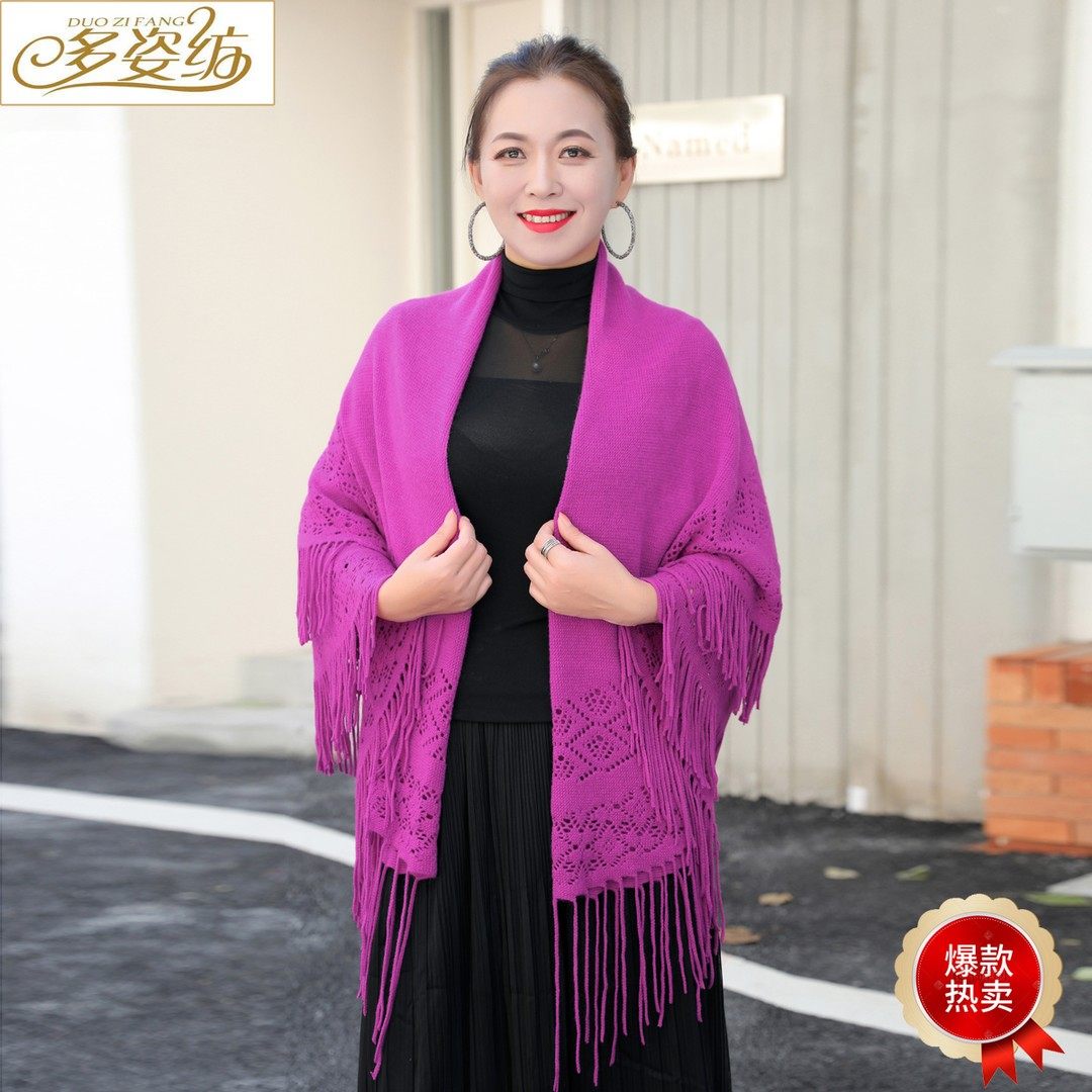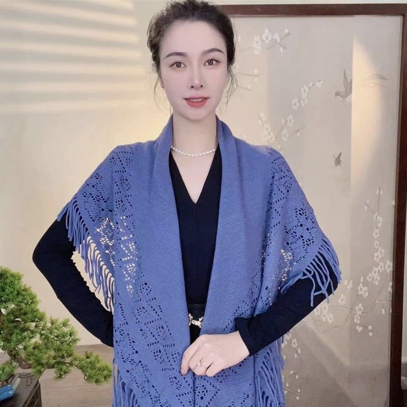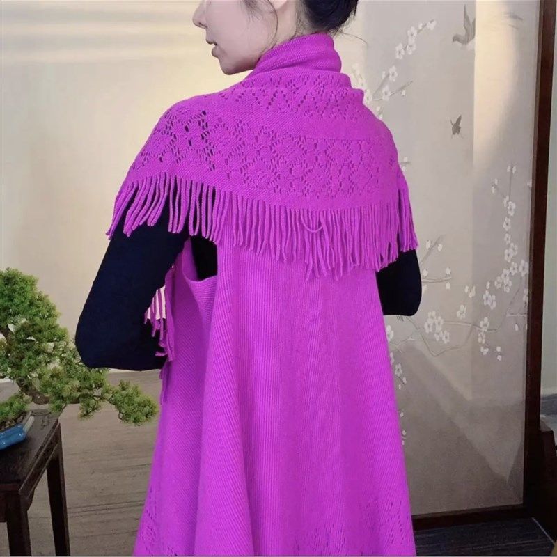 2024秋冬新款百变流苏针织披肩女百搭洋气多功能围巾保暖外搭开衫