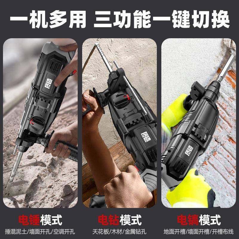 无刷锂电电锤家用冲击钻混凝土充电式大功率钻电镐三用多功能手持