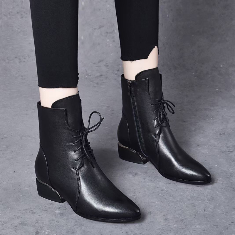 真皮马丁靴短靴女鞋单靴加绒保暖尖头加绒中筒秋冬季女靴舒适百搭