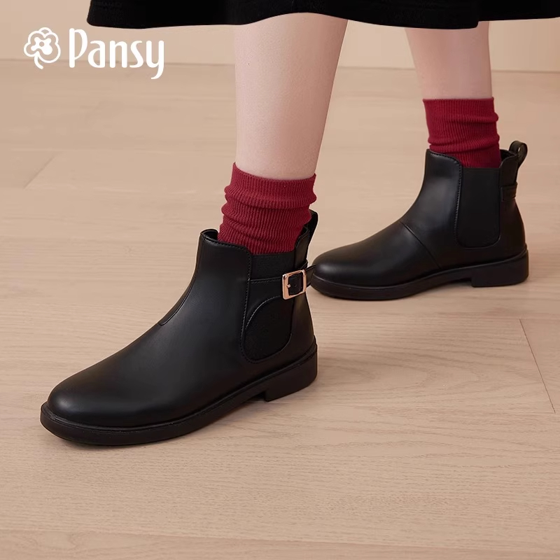 Pansy盼喜日本女鞋单靴休闲切尔西短靴平底鞋女士靴子秋冬款
