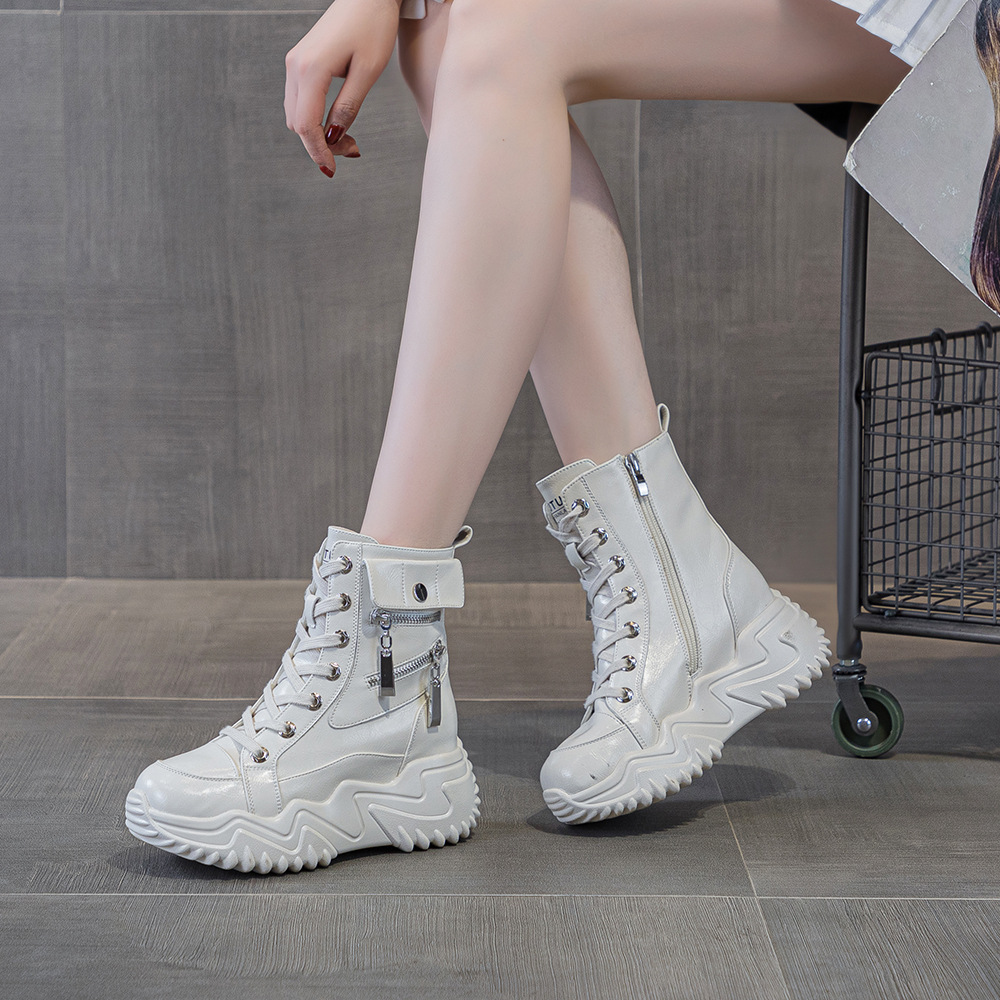 厚底短靴白色马丁靴2024新款真皮英伦百搭休闲高帮女鞋单靴加绒