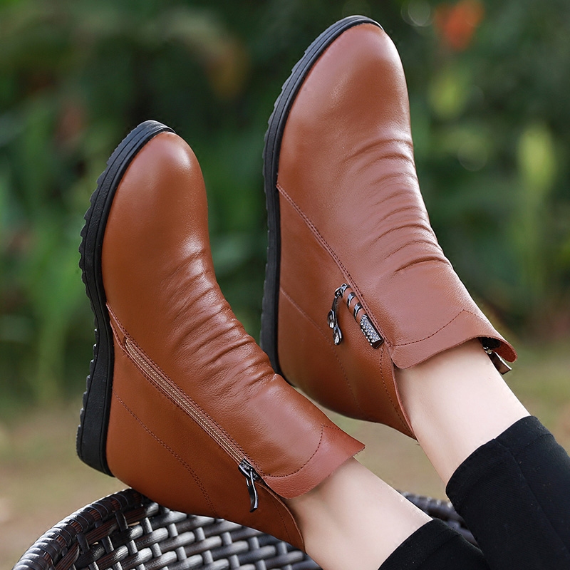 妈妈棉鞋真皮软底防滑加绒保暖中年女鞋单靴子粗跟短靴工作棉皮鞋