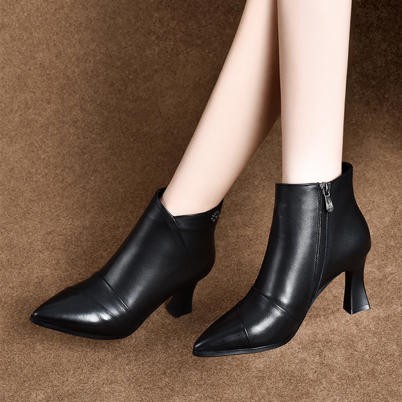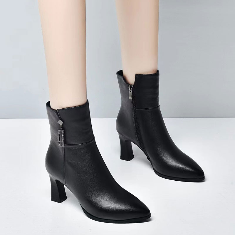 头层牛皮马丁靴短靴女鞋单靴加绒保暖秋冬加绒高跟鞋春秋软皮单靴